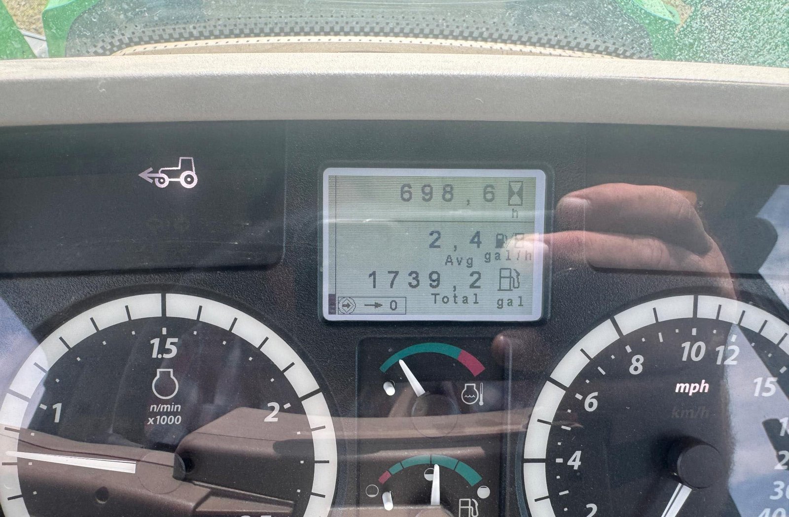 Rides on 380/85R28 front and 460/85R38 rear tires with fenders. Comes with operator’s manuals for tractor and loader.