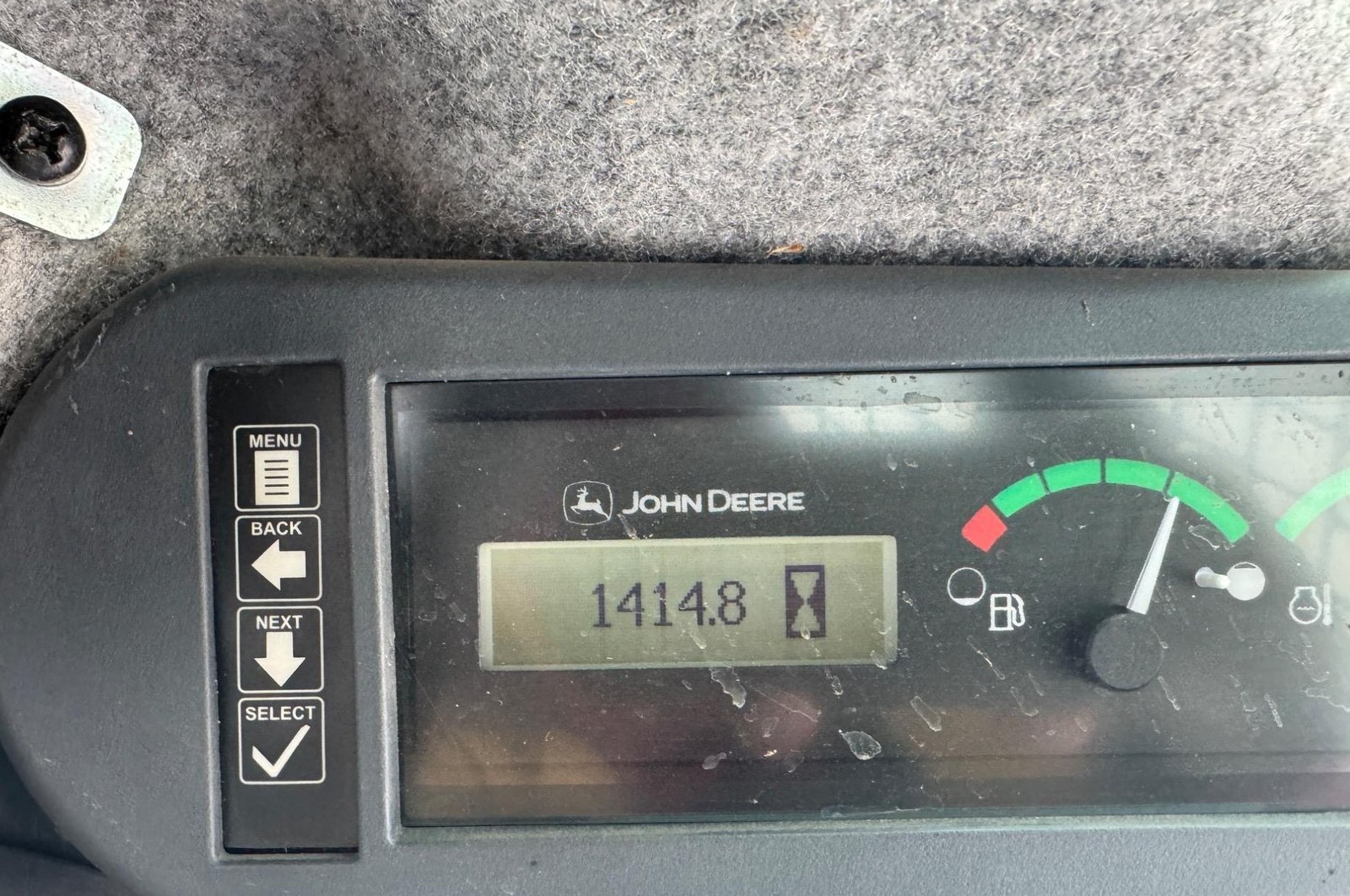 Shows 1,413 hours. Powered by a 4-cylinder diesel engine with Hi-Flo hydraulics and ISO switchable controls for versatile performance.