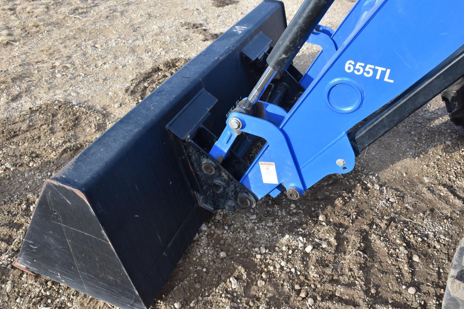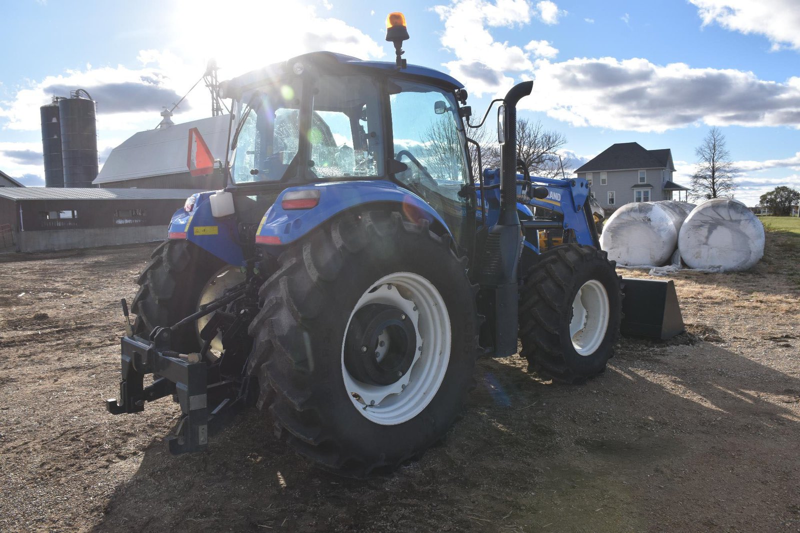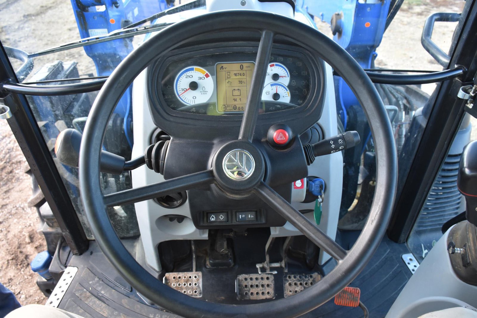 This 2019 New Holland Powerstar 110 is a versatile workhorse showing only 1,674 hours. Equipped with a reliable mechanical transmission and MFWD, it comes work-ready with a 655TL front loader and rear wheel weights for maximum stability. The setup features a 540/1000 PTO, dual hydraulic outlets, and a 3-point hitch with a Quick Hitch for effortless implement changes. Riding on 380/85R24 front and 460/85R34 rear tires, this complete package is built for efficiency and durability on any job site.