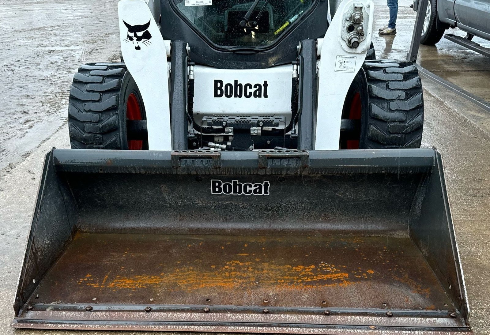 Features auxiliary hydraulics, hydraulic quick coupler, a Bobcat 74” heavy-duty bucket with bolt-on cutting edge, and 48” Bobcat forks for added versatility.