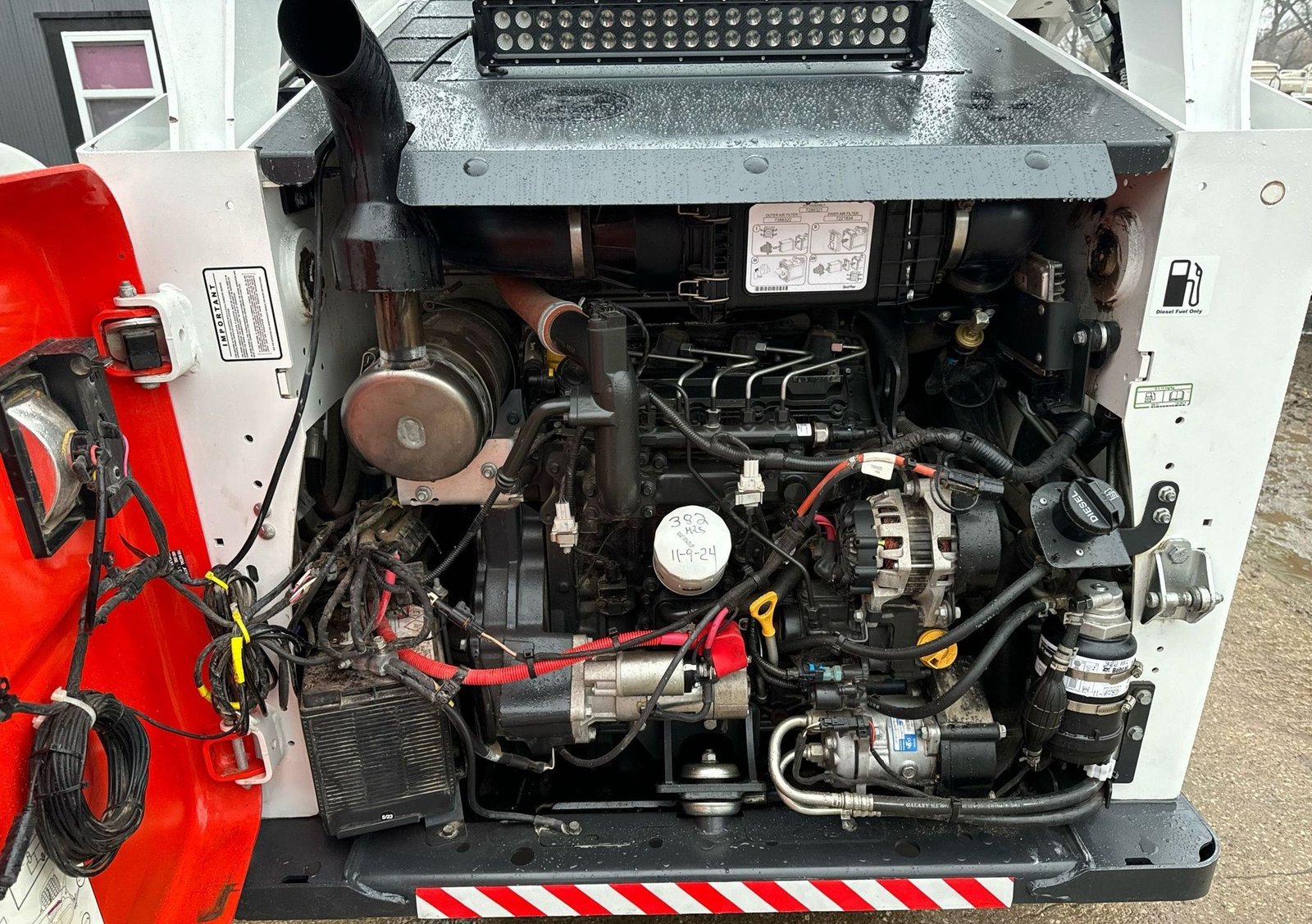 Shows 382 hours. Powered by a Bobcat 4-cylinder diesel engine with hydrostatic transmission and two-speed travel for smooth, responsive operation.